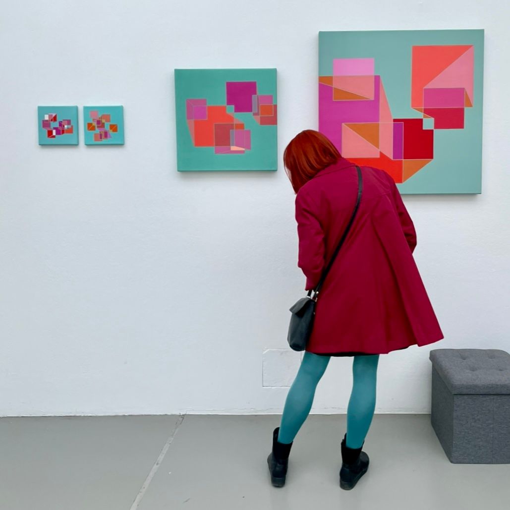 Sibylle M Rosenboom ist eine zeitgenössische Malerin aus Darmstadt, deren Werk sich im Spannungsfeld von Geometrie, Farbe und räumlicher Wahrnehmung bewegt. Ihre abstrakte Kunst ist geprägt von klaren Formen, subtilen Farbkontrasten und einer tiefen räumlichen Wirkung. Ihre Kunst folgt den Prinzipien der Konkreten Richtung: ohne Symbolik, rein visuell und formal durchdacht.